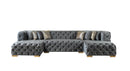 Neva Sectional embodies luxury and elegance, designed to be the focal point of any room. Fully tufted and handcrafted with meticulous attention to detail, this sectional showcases unique craftsmanship. The rich velvet fabric adds a touch of opulence, creating a sumptuous feel and a sophisticated look. Perfect for lounging in style, this sectional combines comfort and sophistication in one stunning package.